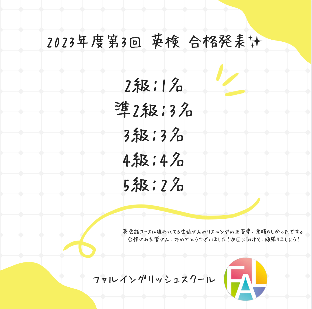 FALの生徒さん全員が合格です!